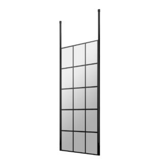 Hudson Reed Abstract Frame Wetroom Screen With Ceiling Posts – 8mm Glass – Matt Black