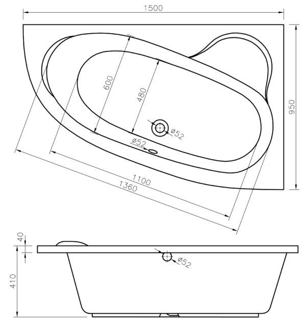 • This product is a replacement for DIBC0004 Orlando Corner 1500x1020x560mm 0TH Bath (RH) which is now discontinued