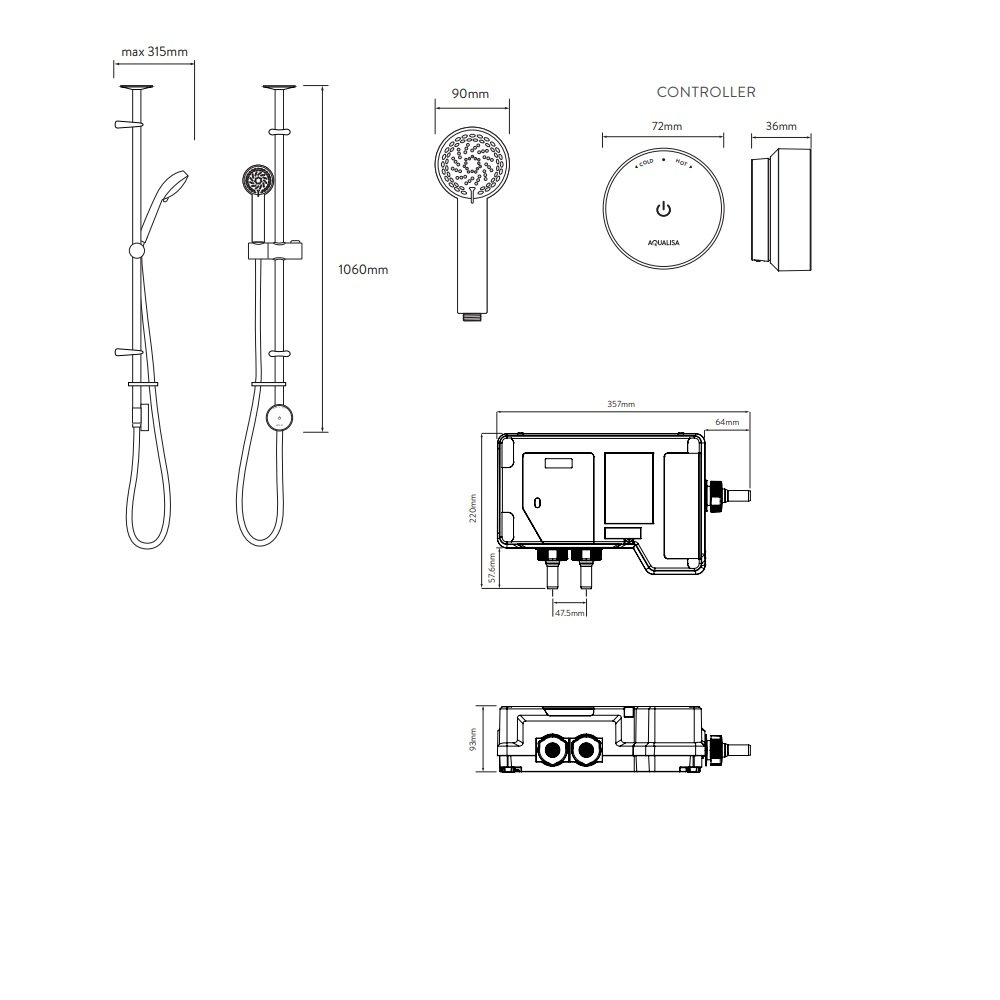 Aqualisa Quartz Blue Smart Exposed Shower Slide Rail Kit – Chrome