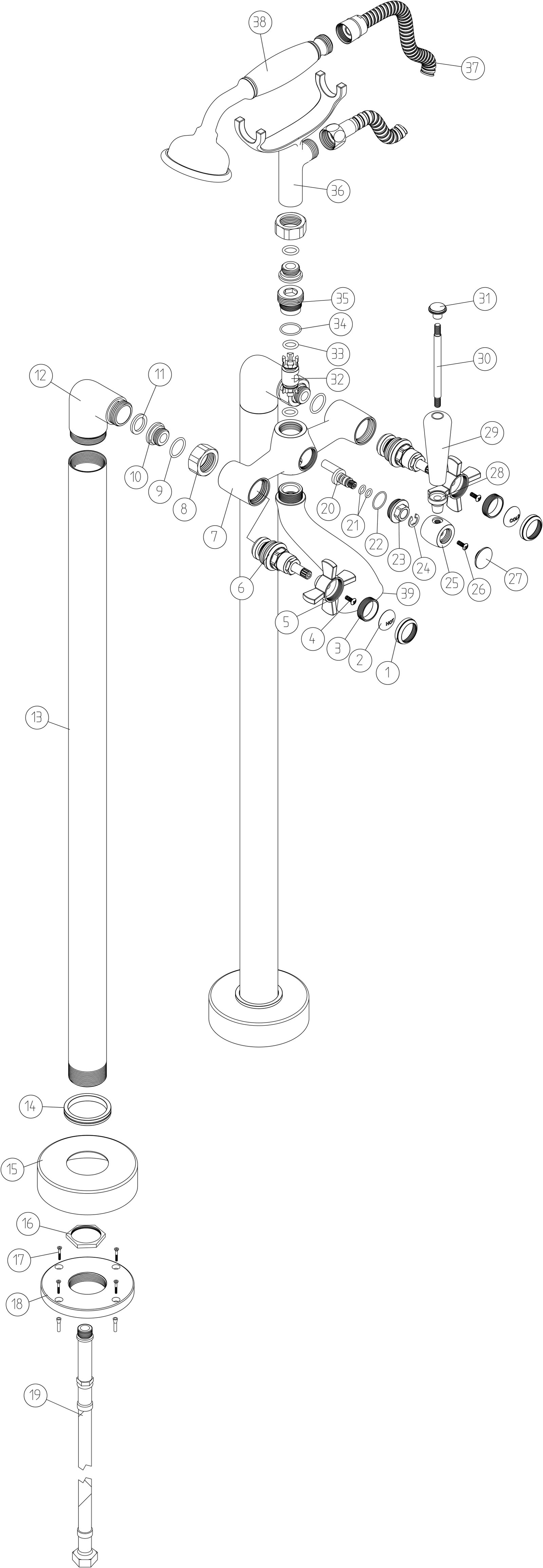 • Low Pressure Deck Mounted Chrome Bath Filler