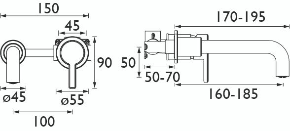 Bristan Altum 2 Tap Hole Wall Mounted Basin Mixer Tap
