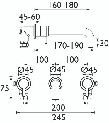 Bristan Altum 3 Tap Hole Wall Mounted Basin Mixer Tap