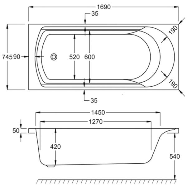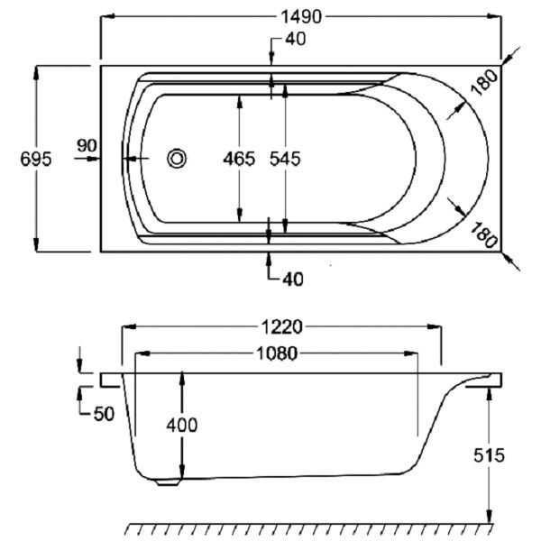 - Bath Thickness: 5mm + GRP