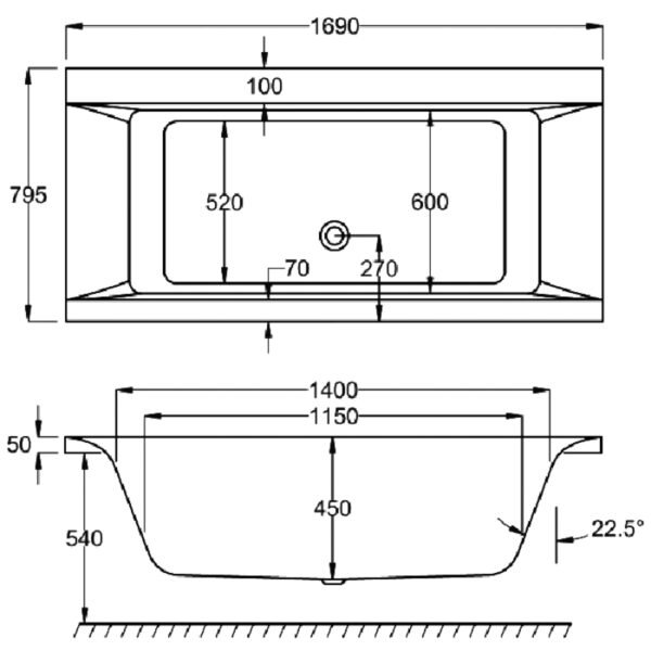 Tissino Londra Premium Double Ended Bath – White – 1700mm X 750mm