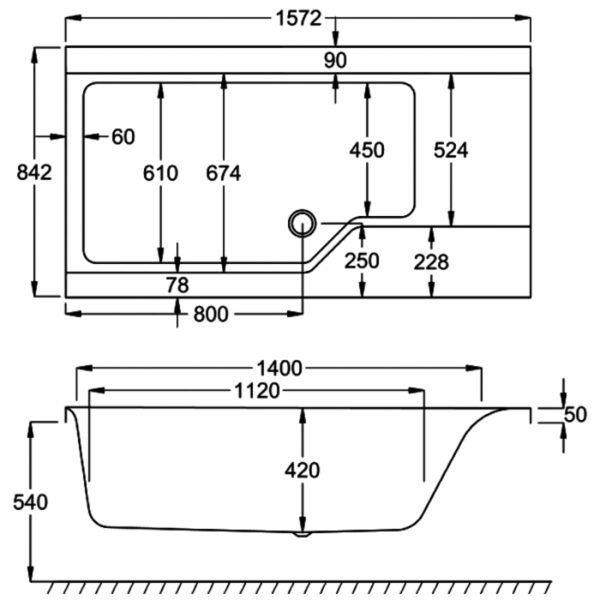 Carron Urban Swing Carronite Shower Bath – 1575mm x 850mm – No TH – White