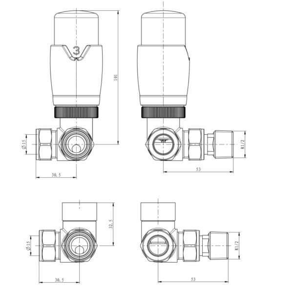 Tissino Hugo Straight Radiator Valves including Thermostatic Head