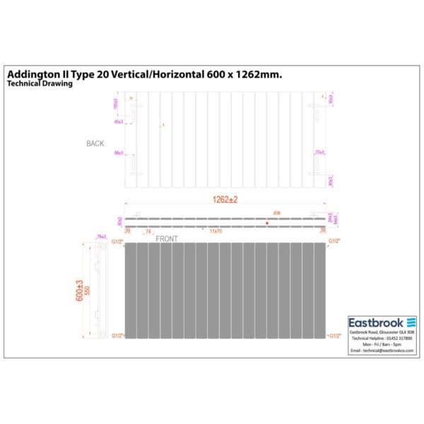 Eastbrook Addington Type 10 Designer Radiator – Gloss White - 1400mm x 588mm