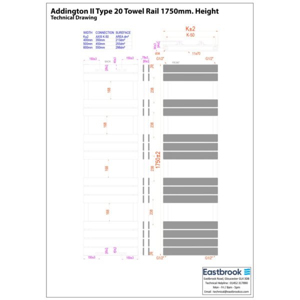 Eastbrook Addington Type 10 Designer Radiator – Gloss White - 1800mm x 588mm