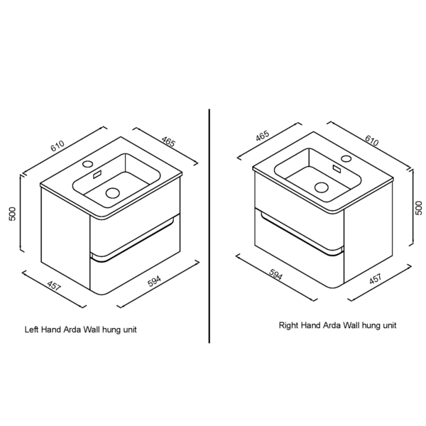 Eastbrook Arda 2 Drawer Wall Hung Vanity Unit With Basin – 600mm Wide