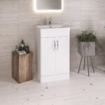 Eastbrook Hardwick 2 Door Floor Standing Vanity Unit With Basin – 600mm Wide – 1 Tap Hole – Matt White