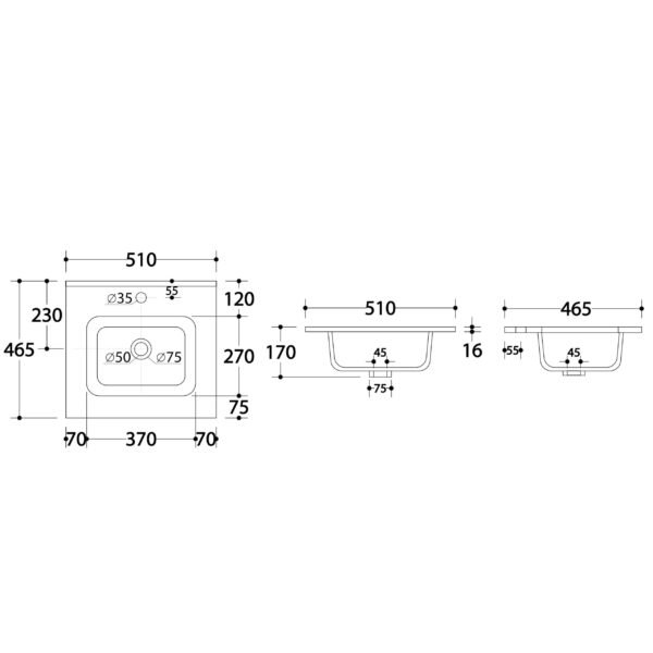 - Basin Width: 510mm