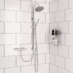 - Comes with Rectangular Shower Head, Square Shower Arm & Shower Shelf – Chrome