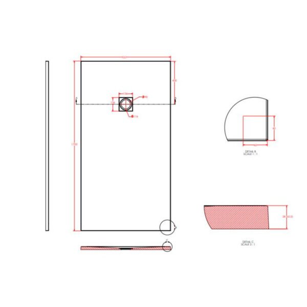 Acquabella Base Slate Shower Tray – Beige – Size Options - 1800mm Long X 900mm Wide X 30mm High