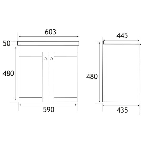 - Basin Width: 603mm