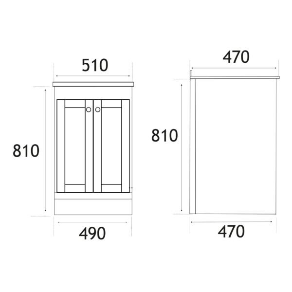 Eastbrook Hardwick 2 Door Floorstanding Vanity Unit With Polymarble Basin – 490mm Wide – 1 TH
