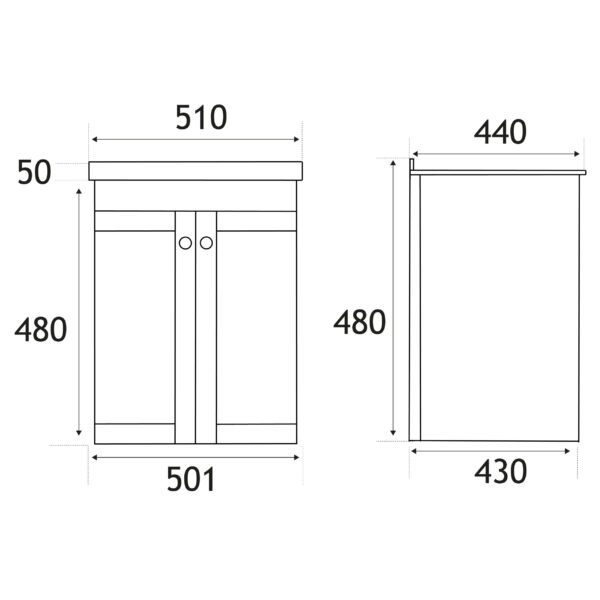 Eastbrook Hardwick 2 Door Wall Hung Vanity Unit With Polymarble Basin – 500mm Wide – 1 TH