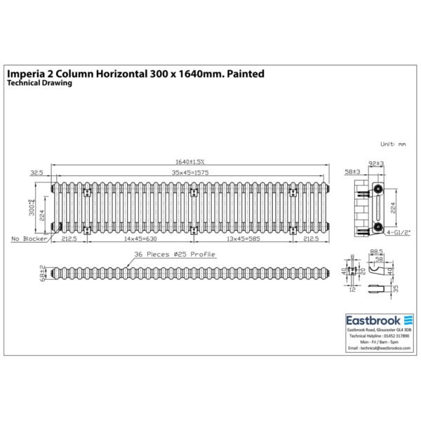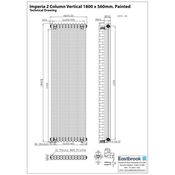 Eastbrook Imperia 2 Column Radiator – Gloss White - 1800mm x 470mm