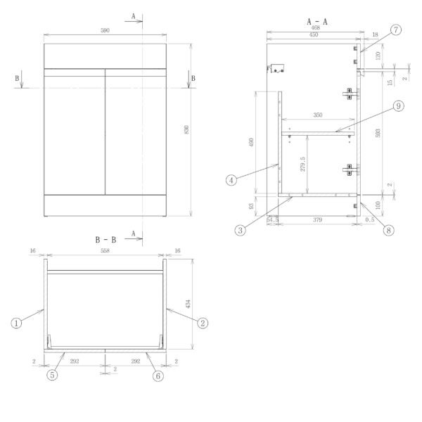 Eastbrook Cavone 2 Door Floor Standing Vanity Unit With Basin – 500mm Wide – 1 Tap Hole - Matt Grey