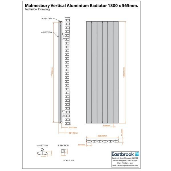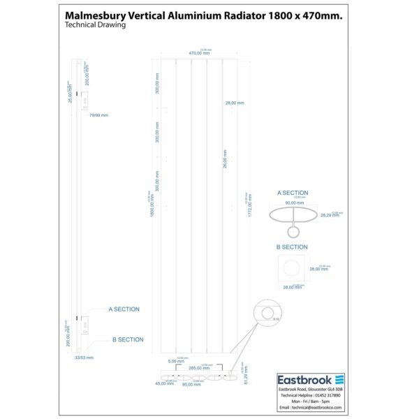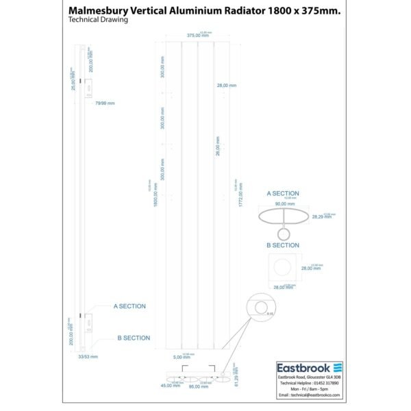 Eastbrook Malmesbury Aluminium Designer Radiator – Silver Effect