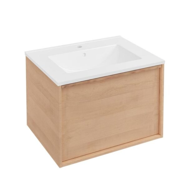 Eastbrook Ravensbourne 1 Drawer Wall Hung Vanity Unit With Square Basin – 600mm Wide – Natural Oak