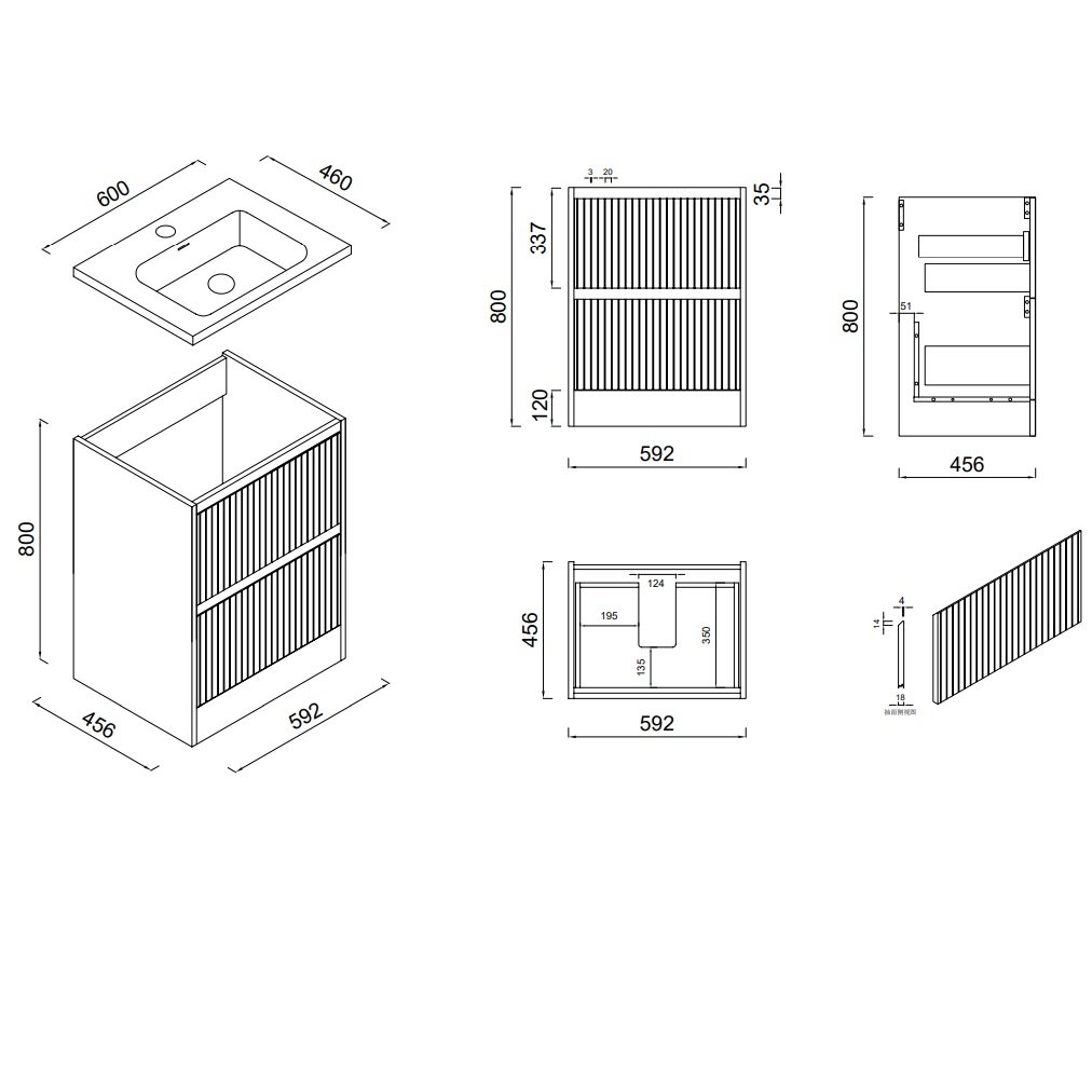 Eastbrook Stockton 2 Drawer Fluted Floorstanding Vanity Unit With Basin – 600mm Wide