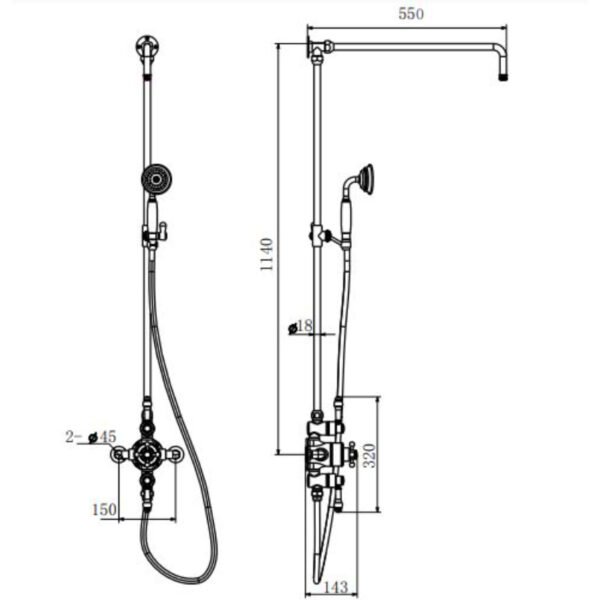 Eastbrook Twin Thermostatic Exposed Shower Valve With Rigid Riser And 8” Rose Head