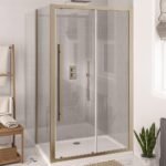 Eastbrook Vantage Easy Clean Recessed Sliding Shower Door – 6mm Glass – Brushed Brass