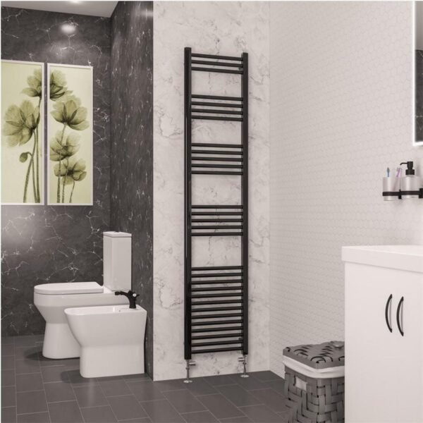 Tissino Hugo2 Vertical Straight Heated Towel Rail – Matt Black - 1212mm X 400mm