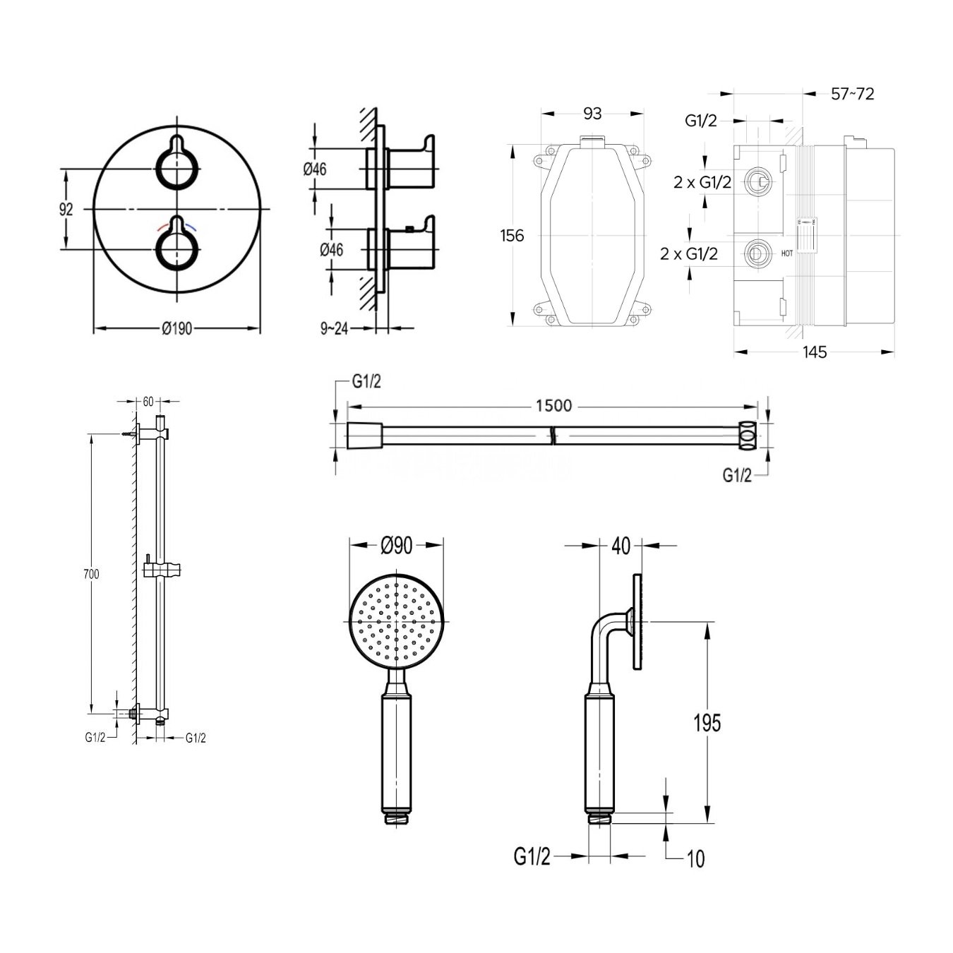 - Includes: Shower Valve, SlimBOX, Slide Rail, Handshower, Hose Pipe
