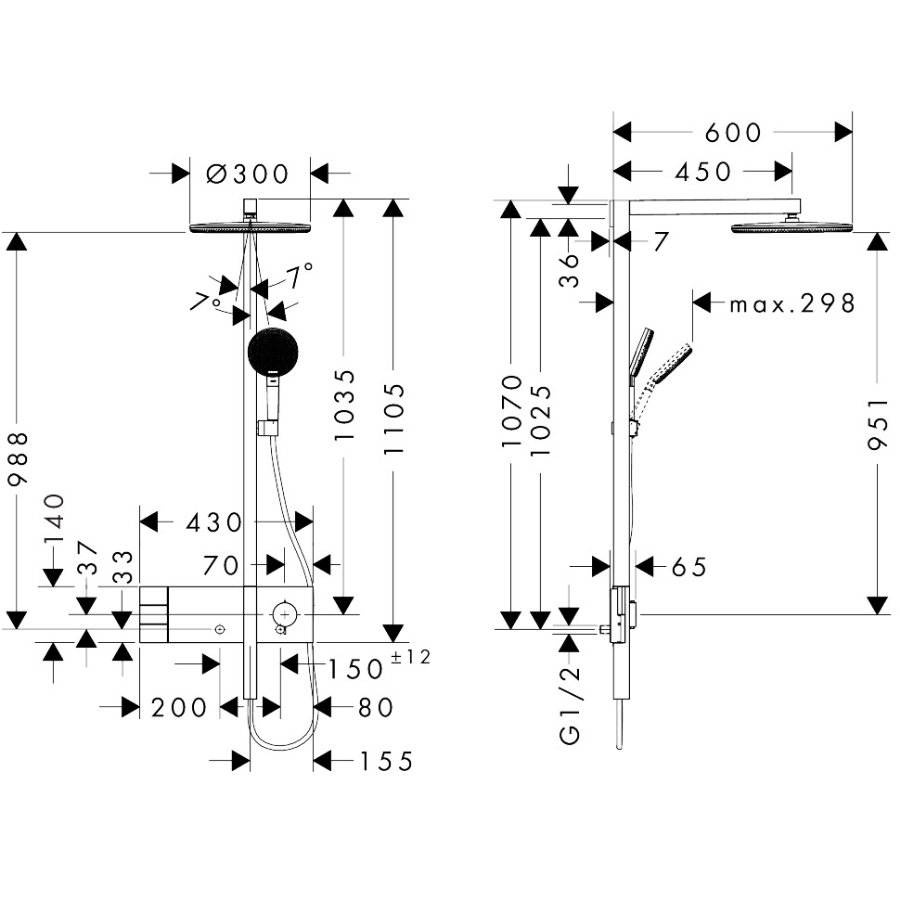 - consists of: overhead shower, hand shower, slider, thermostatic shower mixer, shower hose, shower rail