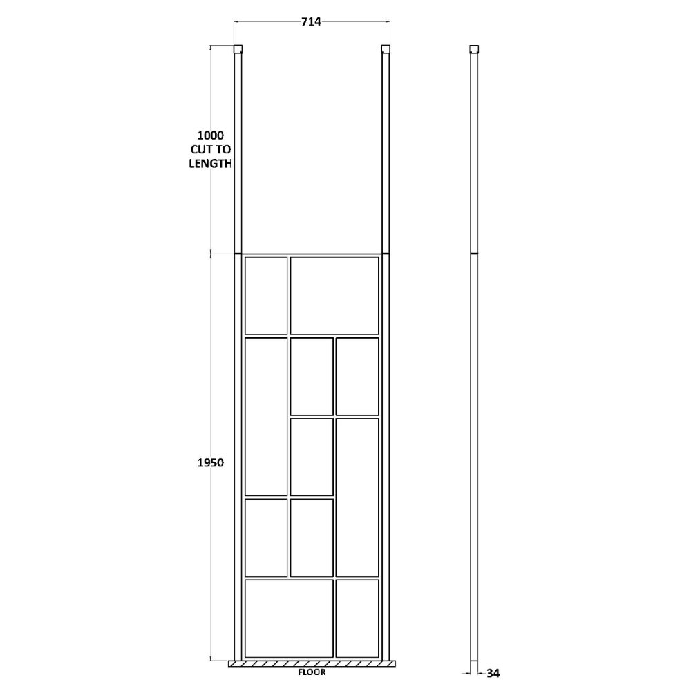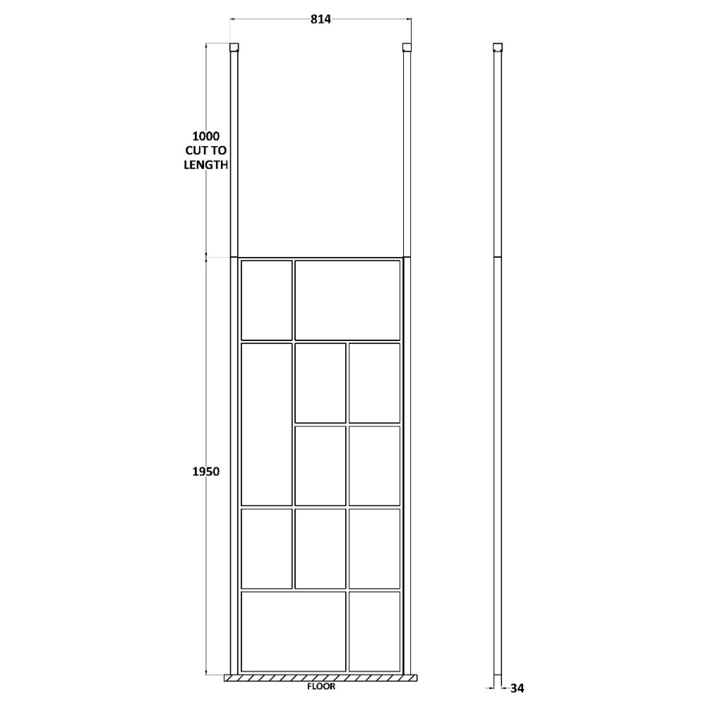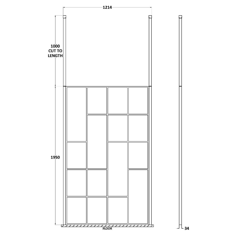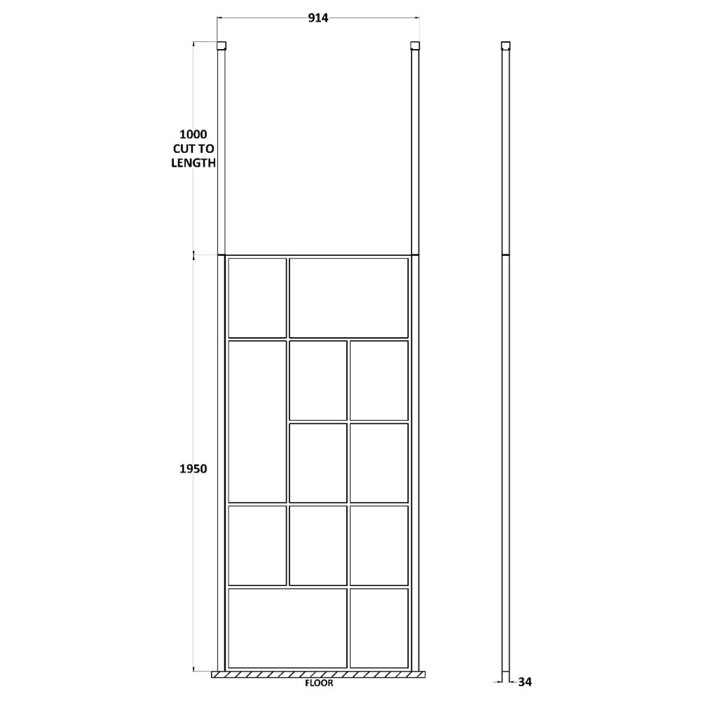 Hudson Reed Abstract Frame Wetroom Screen With Ceiling Posts – 8mm Glass – Matt Black