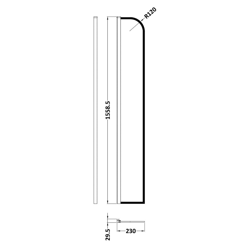 Hudson Reed Arched Wetroom Return Panel – 8mm Glass – 230mm Wide – Matt Black