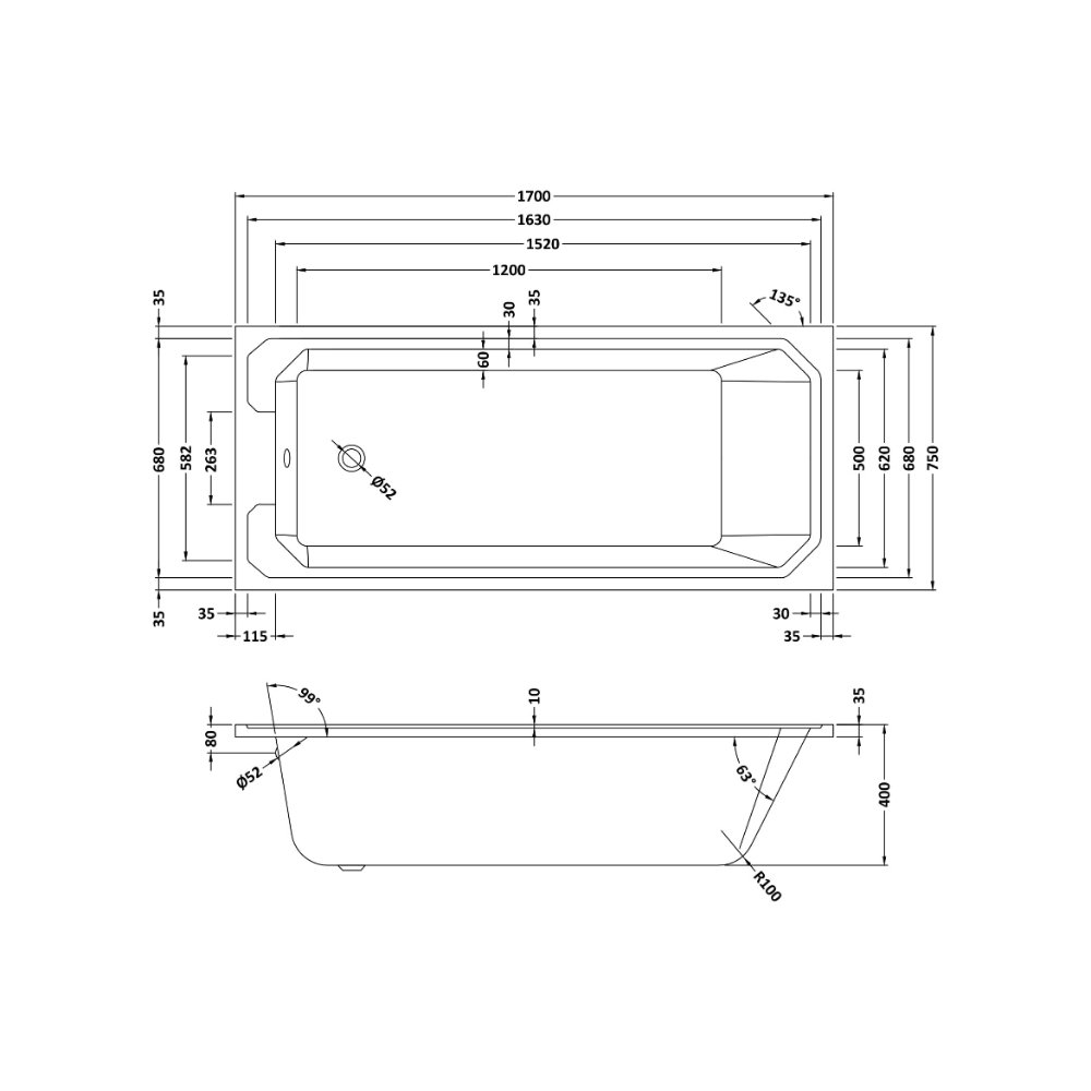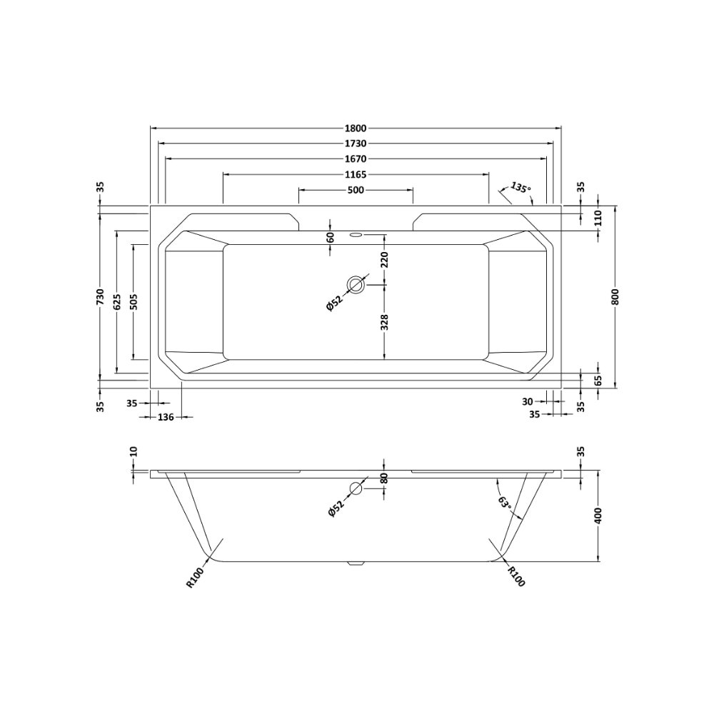 Hudson Reed Ascott Art Deco Double Ended Bath – No TH – White