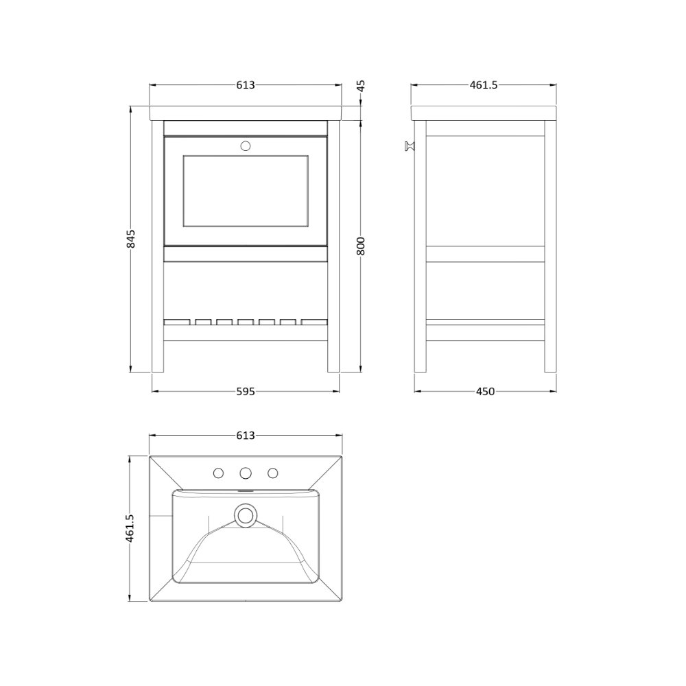 Hudson Reed Bexley 1 Drawer Floorstanding Vanity Unit With Modern Fireclay Basin – 3 TH – 600mm Wide