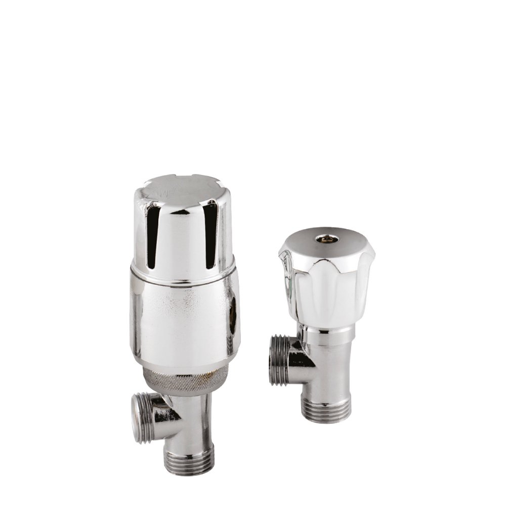 Hudson Reed Bi-Directional Lockshield Thermostatic Angled Radiator Valves Pair – Chrome