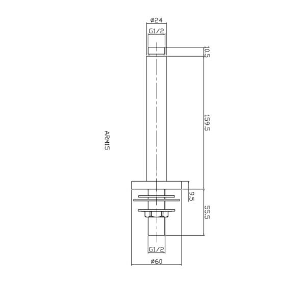 Hudson Reed Ceiling Mounted Shower Arm – 225mm Long