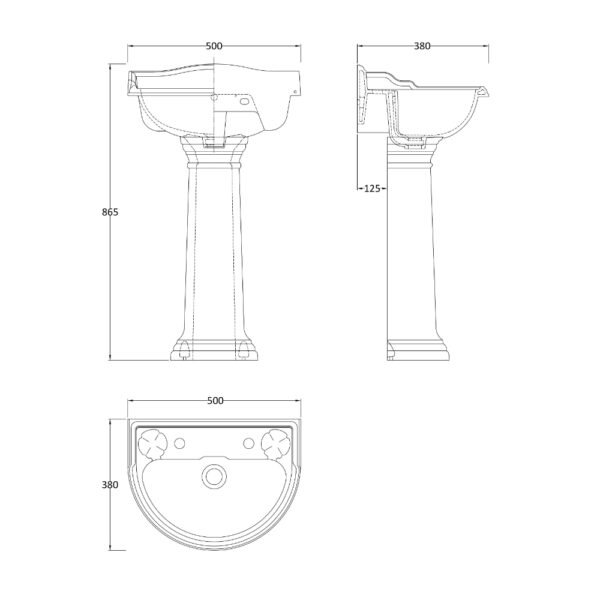 Hudson Reed Chancery Basin With Full Pedestal – 500mm Wide – White