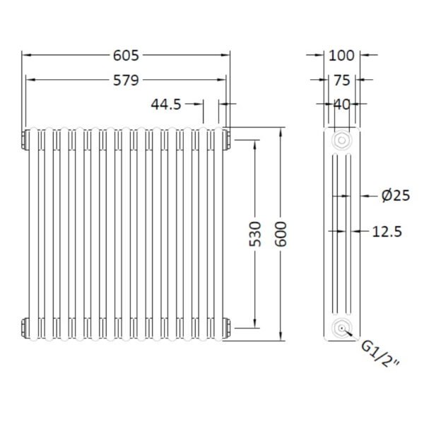 Eastbrook Imperia 3 Column Radiator – Gloss White - 600mm x 830mm