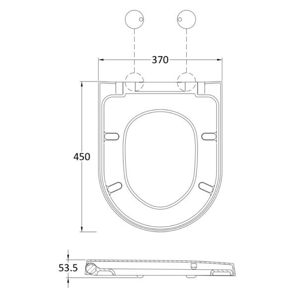 Hudson Reed D Shaped Soft Close Toilet Seat With Hinges And Cover Cap – 370mm Wide – Gloss White