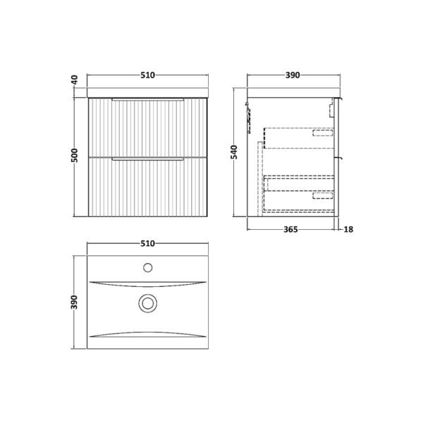 Hudson Reed Fluted 2 Drawer Wall Hung Vanity Unit With Basin 1 – 1 TH