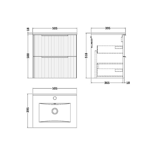 Hudson Reed Fluted 2 Drawer Wall Hung Vanity Unit With Basin 2 – 1 TH