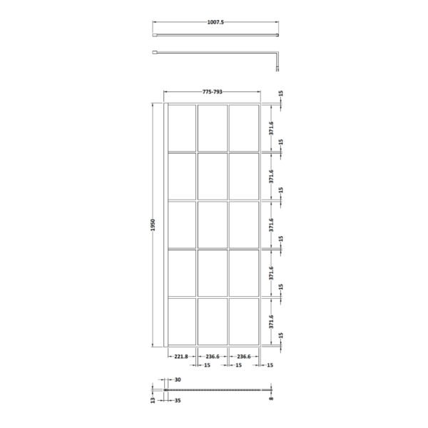 Hudson Reed Framed Wetroom Screen – 8mm Glass – Matt Black