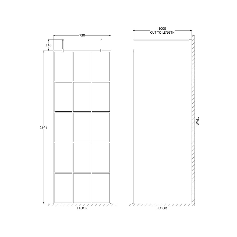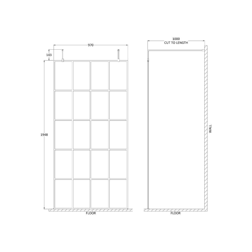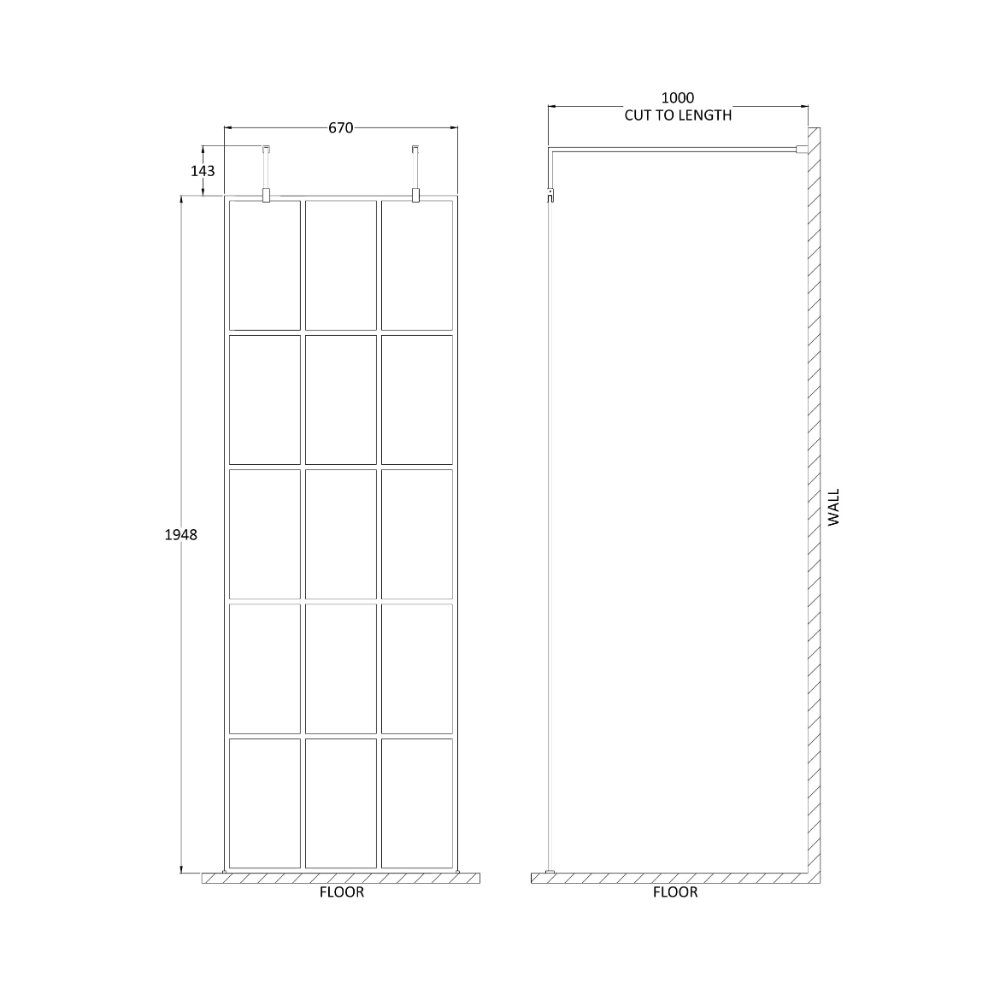 Hudson Reed Framed Wetroom Screen With Arms And Feet – 8mm Glass – Matt Black