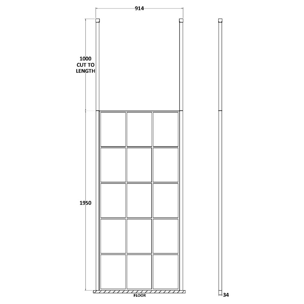 Hudson Reed Framed Wetroom Screen With Ceiling Posts – Matt Black