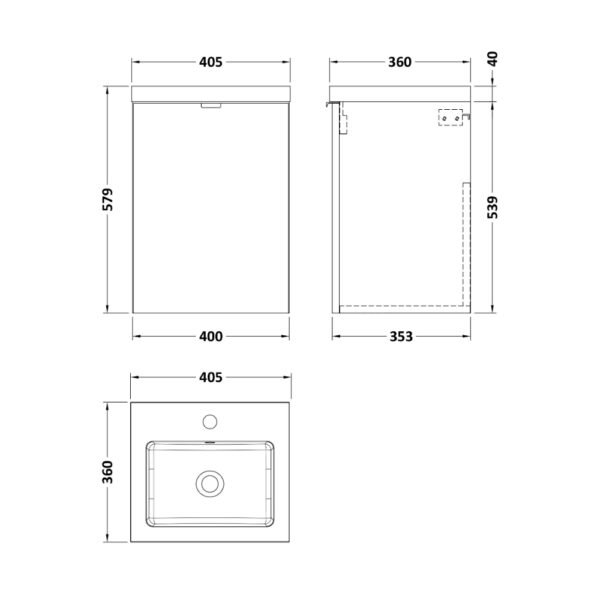 Hudson Reed Fusion 1 Door Cloakroom Wall Hung Vanity Unit With Basin – 400mm Wide – 1 TH