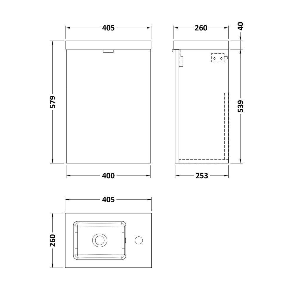 Hudson Reed Fusion 1 Door Cloakroom Wall Hung Vanity Unit With Compact Basin – 400mm Wide – 1 TH