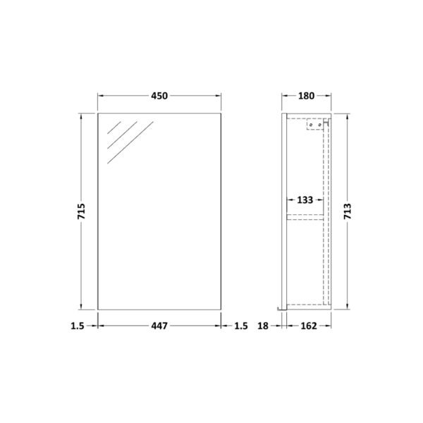 Hudson Reed Fusion 1 Door Non Illuminated Mirror Cabinet – 715mm x 450mm