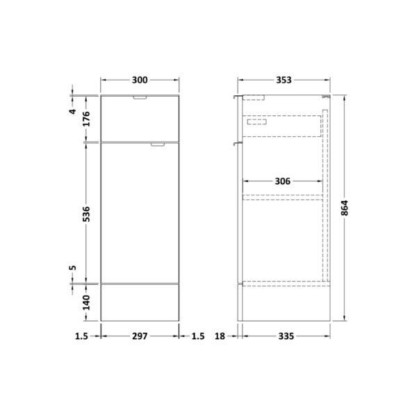 Hudson Reed Fusion 1 Drawer And 1 Door Lined Floorstanding Vanity Unit – 300mm Wide