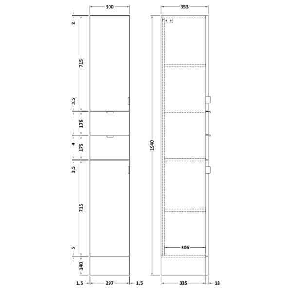 Hudson Reed Fusion 2 Door And 2 Drawer Wall Hung Tall Storage Unit – 1900mm High