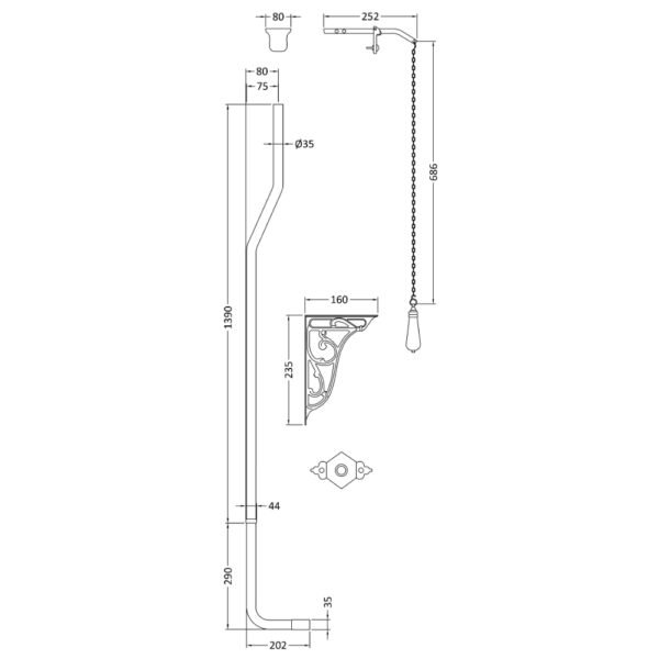 Hudson Reed High Level Flush Pipe Pack – 1680mm High – Chrome